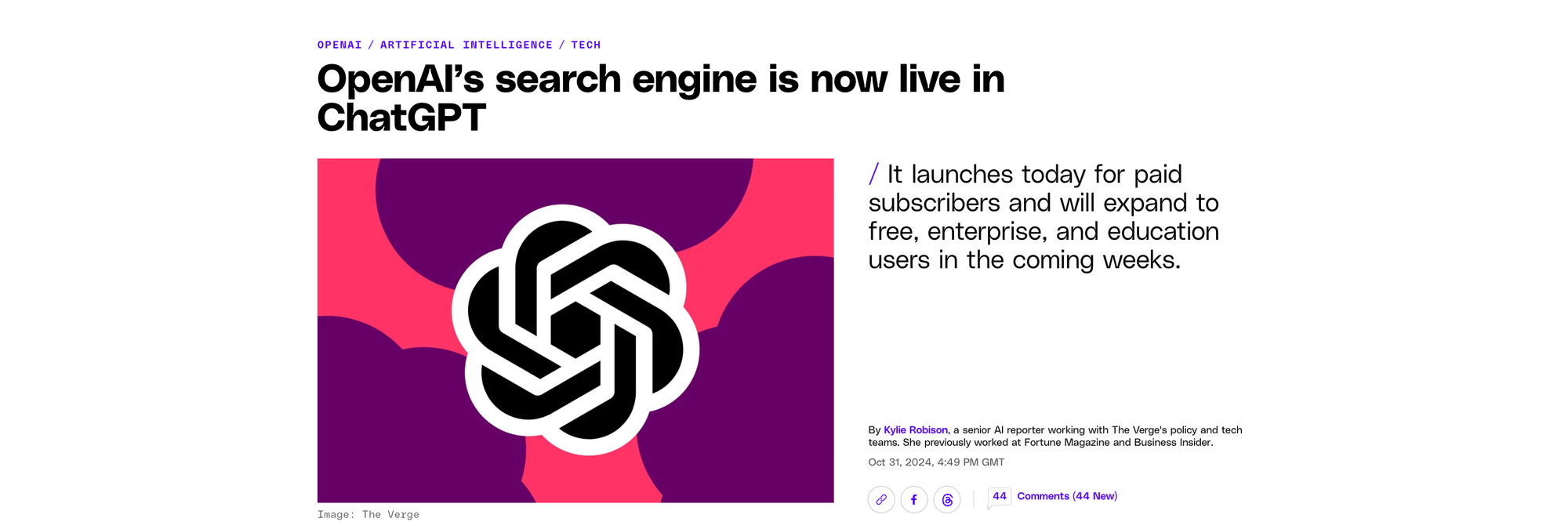 On October 31st, OpenAI announced that with ChatGPT Search, users can “get fast, timely answers with links to relevant web sources, which you would have previously needed to go to a search engine for.”
