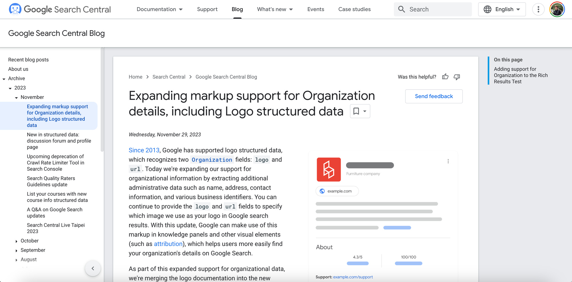 Google has added new Organization Structured Data. In this most recent addition, they’ve added new Organization Structured Data that merges the old logo and URL structured data whilst adding “name, address, contact information, and various business identifiers”.