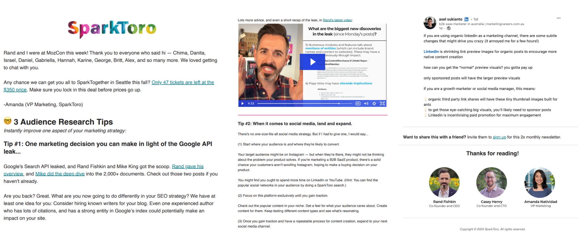SparkToro is a fantastic example of how to put ‘The Human Element’ at the centre of an email marketing content loop, as Rand Fishkin and Amanda Natividad use email to build a human-to-human relationship. Rand is a true modern Shakespeare of content marketing.