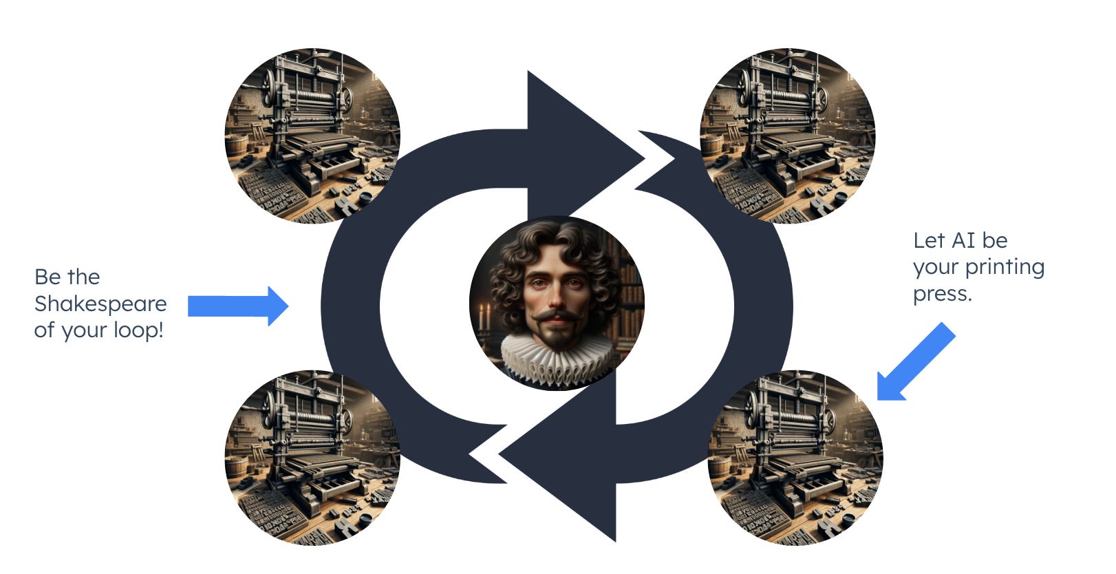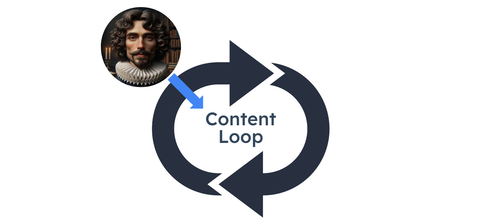 I like to explain this concept by encouraging marketers to: Be the Shakespeare of your content loop, let AI be your printing press.